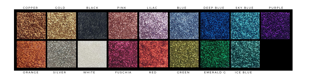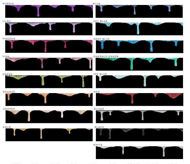 - SILVER, gold, purple, fuschia, pink, green, blue,
