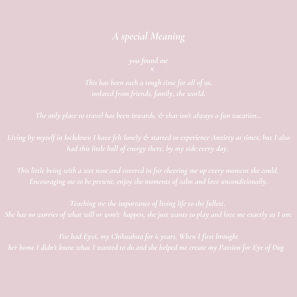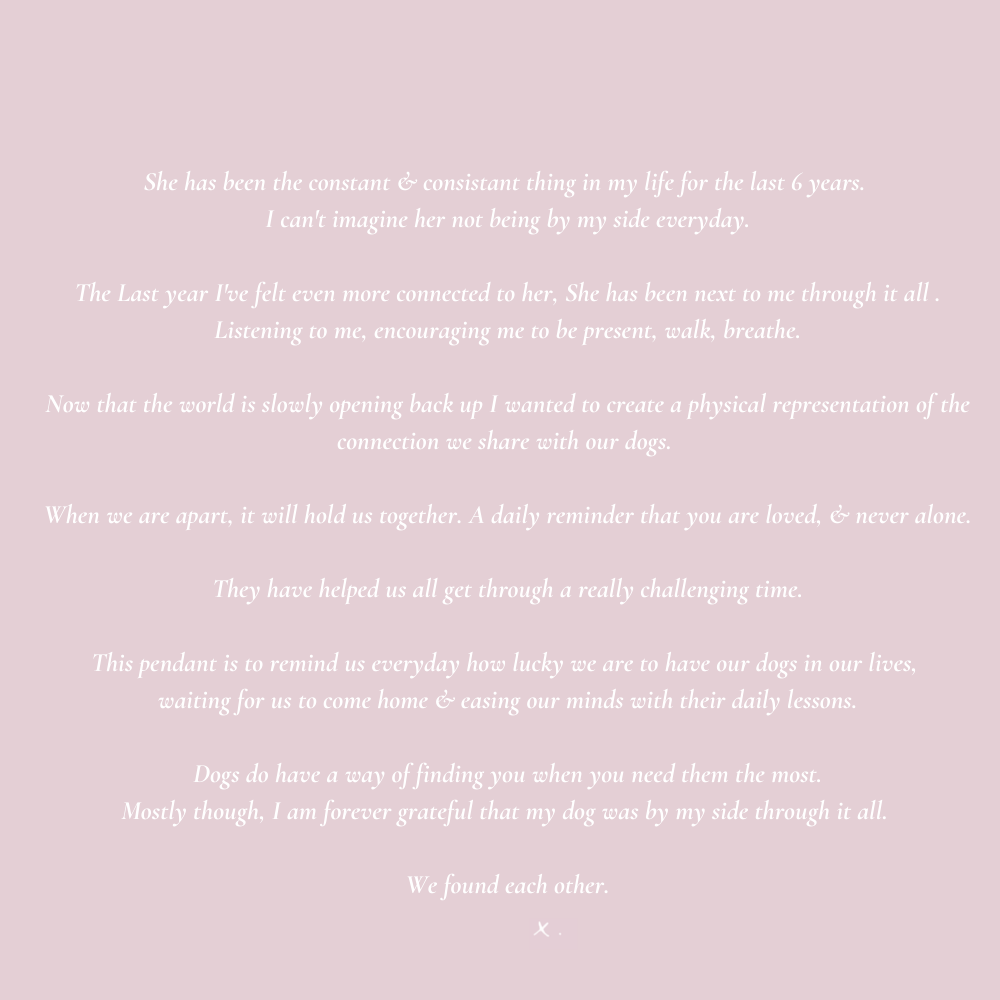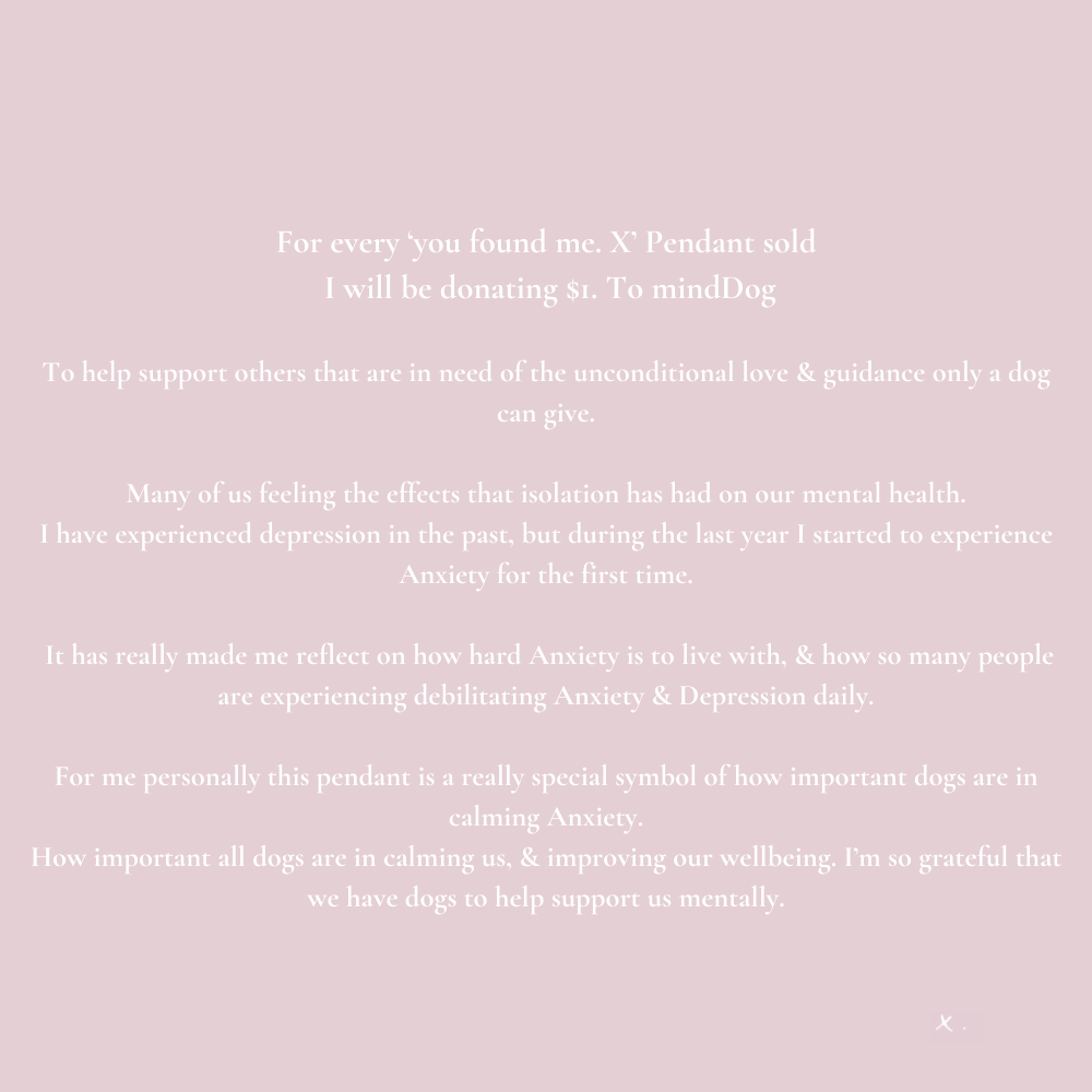 For Every ‘You found me. x’ Pendant Sold I will be donating $1. to mindDog. To help support others that are in need of the unconditional love & guidance only a dog can give.