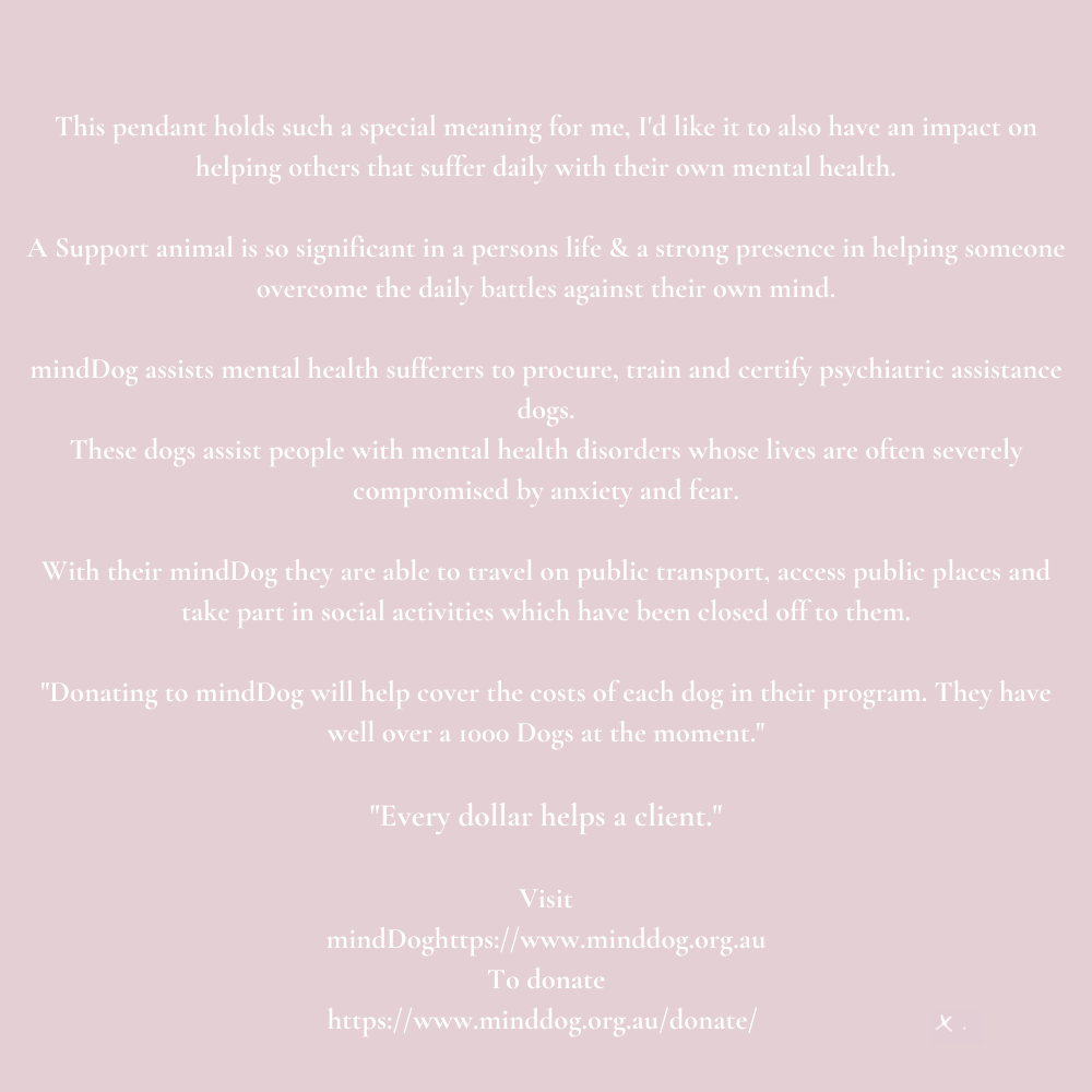 For Every ‘You found me. x’ Pendant Sold I will be donating $1. to mindDog. To help support others that are in need of the unconditional love & guidance only a dog can give.